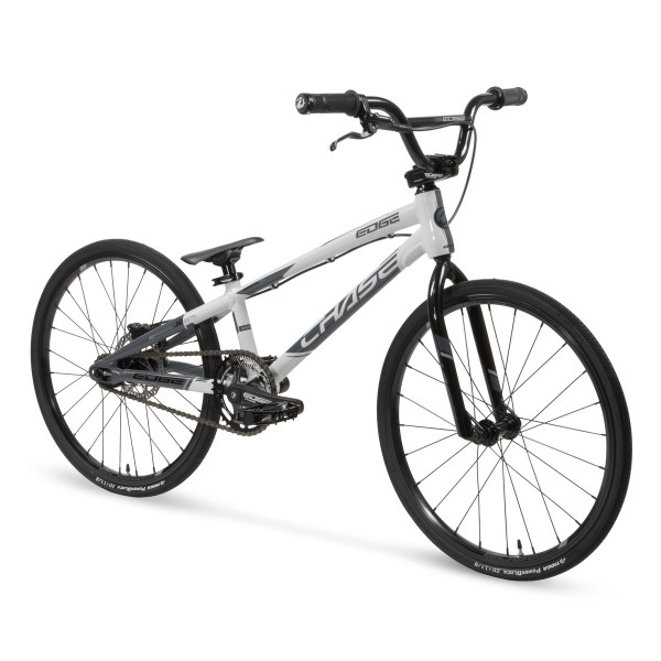 The all new CHASE Edge is a race ready BMX machine, ideal for riders ready to get serious about BMX racing and take it to the next level.Just when you didn't think it was possible, the new Edge has been improved, as now it is equipped with Shimano Hydraulic disc brakes (Junior size & above), all new Chase 24mm 2 piece Alloy Cranks (Expert XL & Above) , updated gearing and crank sizes, a 2 tone paint and graphics design, and an closed rear dropout system with integrated chain tensioner system,. The Edge frame also features hydroformed, triple butted, 6061 aluminum tubes with an integrated head tube. Other featured parts on the Edge include 4130 chromoly fork and handlebars, double wall rims with triple engagement rear cassette rear hub, and TIOGA tires. The combination of all these components arguably makes the CHASE Edge one of the most advanced race BMX bikes available today.