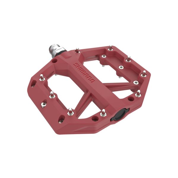 GR400 are grippy flat pedals with a trail riding platform shape that feels stable and secure underfoot. Experience even better bike control by pairing with SHIMANO GR series shoes.