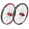 Completely redesigned and optimized, the EXCESS XLS-1 wheels are specially designed for the practice of BMX Race whether in competition or training. They are fitted with EXCESS XLS double-wall aluminum 6061-T6 rims with 2 specific profiles as well as sealed EXCESS XLS hubs fitted with a 3-pawl engagement system on 24 teeth offering you effective engagement when relaunching or exiting. wire rack. Ready to use for V-Brake braking, The rear hub also offers the possibility of converting it for use with a disc brake with its CenterLock system. The front hub also offers a front axle conversion kit to change it to 20mm.