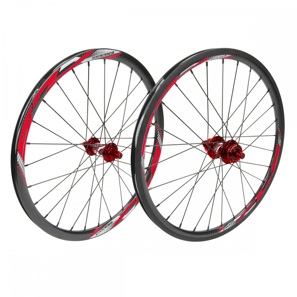 Completely redesigned and optimized, the Hi-end EXCESS XLS-3 wheels are specially designed for the practice of BMX Race whether in competition. They are equipped with the EXCESS XLS Toray T700 3-layer carbon fiber rims as well as the sealed EXCESS XLS hubs fitted with a 5-tooth 3-pawl engagement system on a 120-tooth internal ratchet giving you efficient engagement in relaunch. or at the exit of the grid. Ready to use for V-Brake braking, The rear hub also offers the possibility of converting it for use with a disc brake with its CenterLock system.
